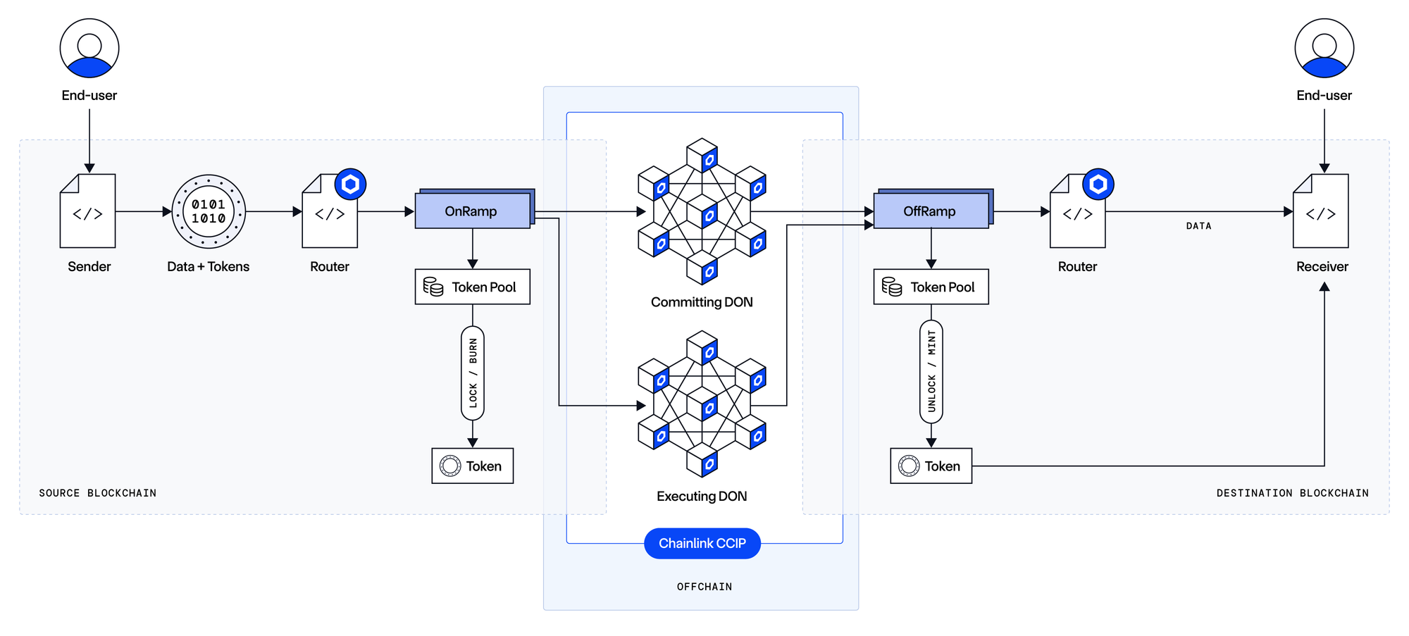 Tokens are sent from a source chain via CCIP, received alongside execution payloads on the destination chain, and immediately routed through Enso’s composable multi-protocol operations in a single atomic transaction.