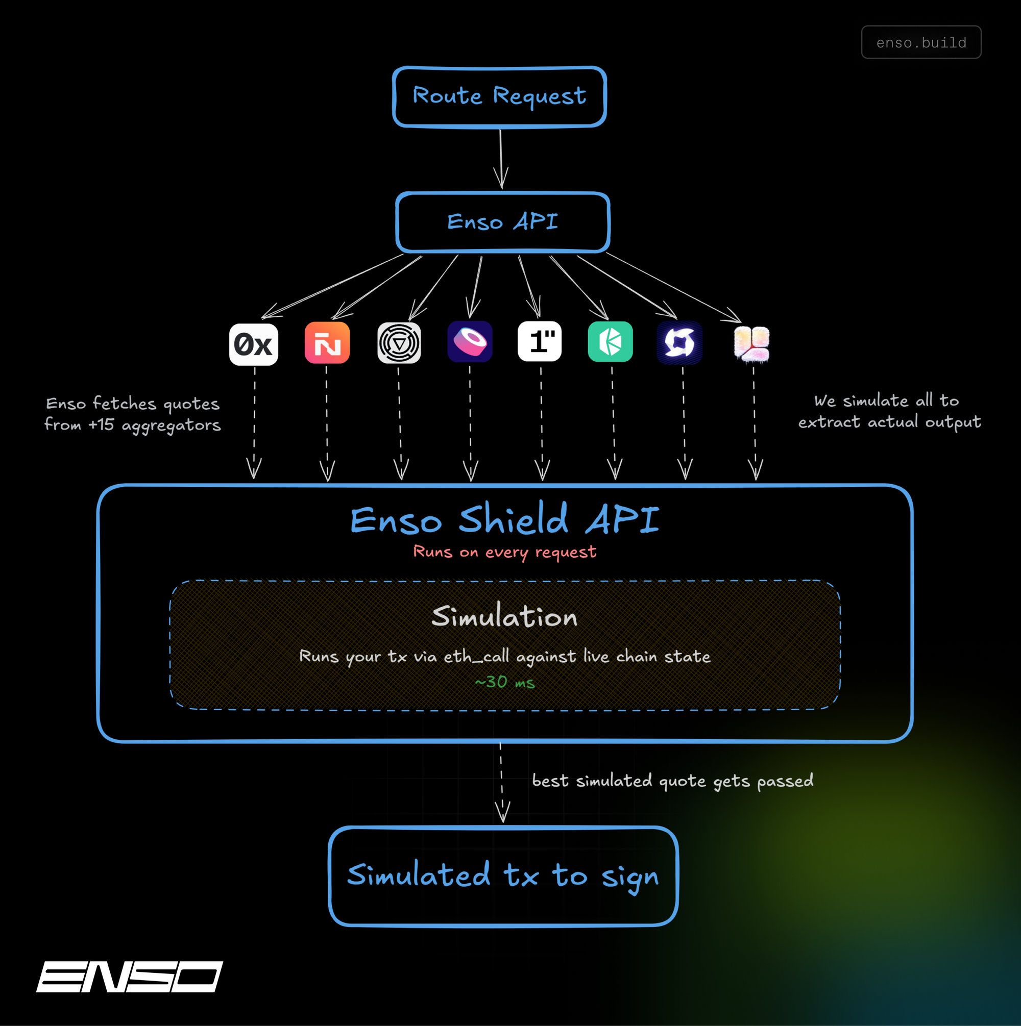 Enso Shield benchmarks aggregators by comparing what they quote against what their transactions would actually return.