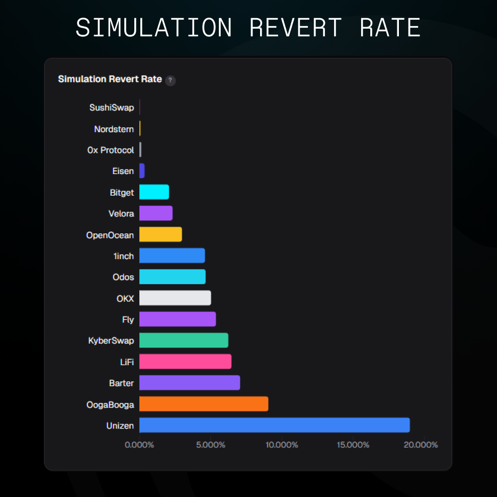 On the other side, Barter, OogaBooga and Unizen show up with the highest simulation revert rate.