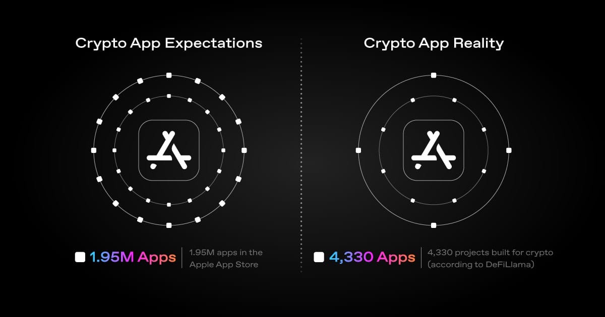 A common phrase for crypto natives is "onchain is the new online." But when we look at the numbers, the Apple App Store hosts 1.9 million apps while blockchain has just over 4,330 projects. This disparity raises a critical question: Why is blockchain development lagging?